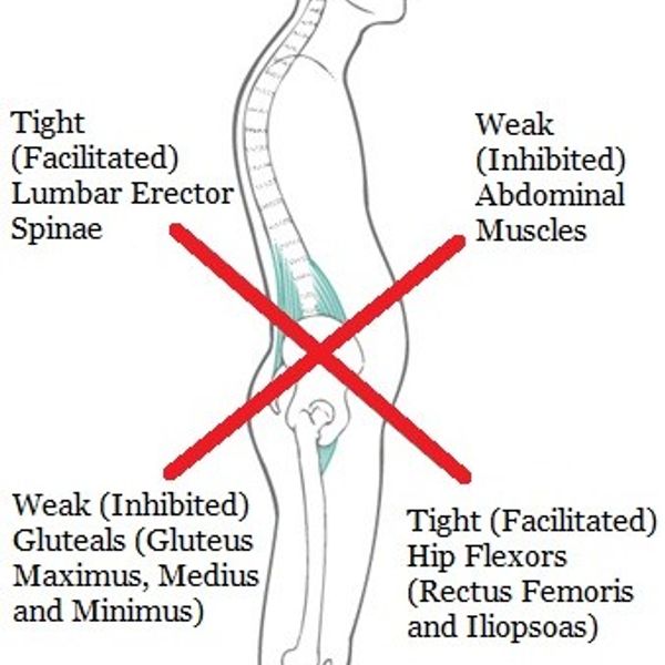 Weakness in one muscle can cause another muscle to overcompensate and become tight. For example, tight hip flexors and lower back muscles often stem from weak deep abdominals and/or glutes. This is known as the lower body cross syndrome.